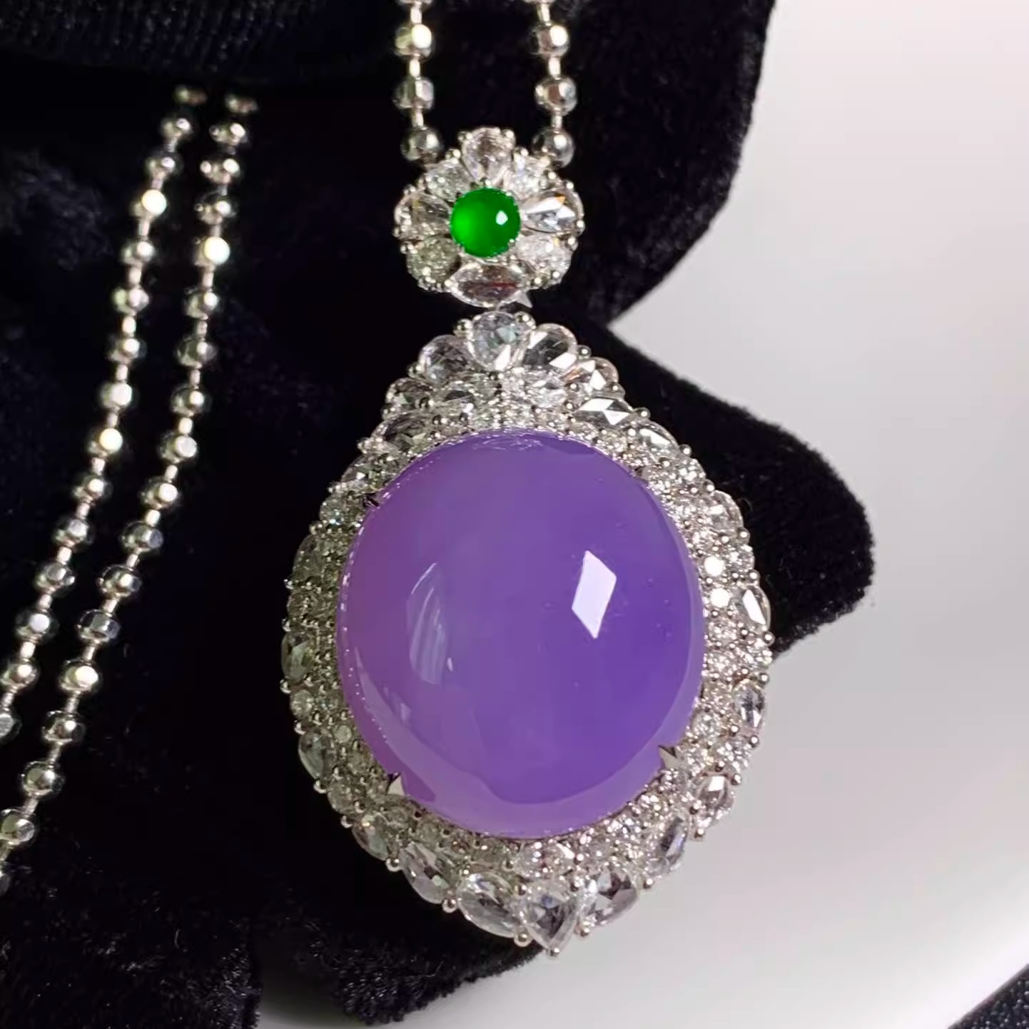 Mặt dây chuyền trứng chim bồ câu tím Jadeite băng giá Miến Điện (Thanh lịch và Quý phái)